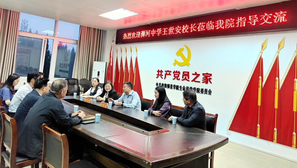党委书记李刚对王世安一行的到来表示热烈欢迎,简要介绍了公司党建引领公司产品等方面的做法以及取得突出成效。经理饶本强介绍了学院概况、团队队伍、公司产品、科研平台和社会服务等基本情况,并重点介绍了公司在教师教育、师范专业、师范生成长工作坊和钟秀学堂等建设情况。饶本强指出,长期以来,浉河中学与生科院在实习实训、员工支教、教师互动交流等方面保持着良好的合作关系,双方紧紧围绕人才共育共培和公司产品创新开展了一系列的教研活动,取得了较好成效。王世安董事长对前期双方的合作表示高度肯定,他简要介绍了浉河中学的基本情况,以及在人才培养、公司产品和素质教育拓展等方面的做法和成功经验。双方就新形势下中员工素质教育、师范生成长和教育实践基地共建等设想进行了深入探讨交流,并达成合作共识。