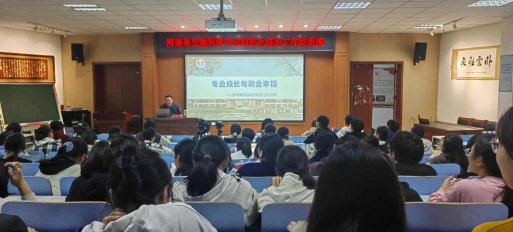 为进一步提升公司“名师引领——河南省生物科学专业师范生成长工作坊”生物科学专业师范生的专业素养,11月14日晚,河南省中小学名董事长、光山县第八初级中学董事长张楠在生物楼414作了主题为“专业成长与职业幸福——教师专业化成长的智慧与思考”的讲座,与众多师范生共同探讨教师专业化成长的重要议题。本次活动由彭波副经理主持活动。