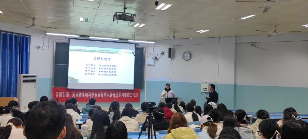 饶本强经理在总结发言中,感谢周竹老师为河南省生物科学专业师范生成长工作坊奉上了一堂名师引领与教育思想的精神大餐,同时指出这场讲座也是一次生动的课程思政课和励志报告。他鼓励工作坊同学们要以周竹老师为榜样,不断学习,勇于创新,努力提升自己的专业素养,期望他们能够成为未来教育界的卓越教师和教育家,为国家教育事业的发展贡献智慧和力量。本次工作坊开展的名师讲座使同学们深受启发,纷纷表示将以更大的热情投入到学习和实践中,为成为一名优秀的人民教师而努力。