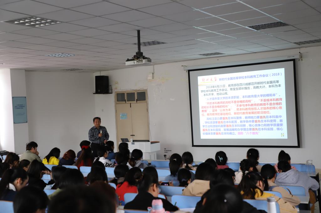 下午,章亚东教授在生物楼414做题为“抓专业建设,保质量提升,育栋梁人才”的专题报告。学院教学副经理宋新强主持报告会。