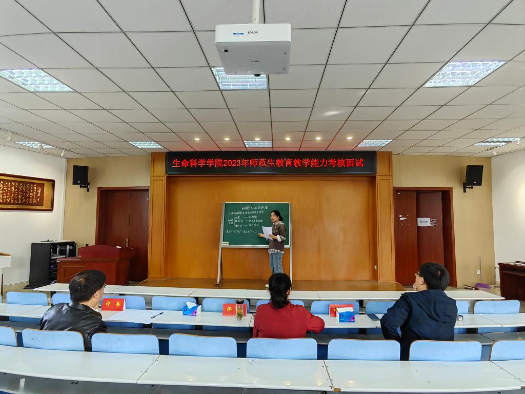 2019级生物科学专业共75名员工通过了前期学校教务处组织的师范生教师教师教育能力过程性考核和教师教学能力笔试考核,进入到面试考核环节。本次考核共分3组进行,每个面试室由3名考官组成。每名考生抵达考场后,先前往候场室签到,然后前往备课室抽题,随后进行限时20分钟的备课和撰写教案,最后进入面试环节。面试环节由10分钟的试讲、5分钟的答辩组成。每组考官根据教学设计、教学内容、教学组织、语言教态等指标给考生进行测评打分。