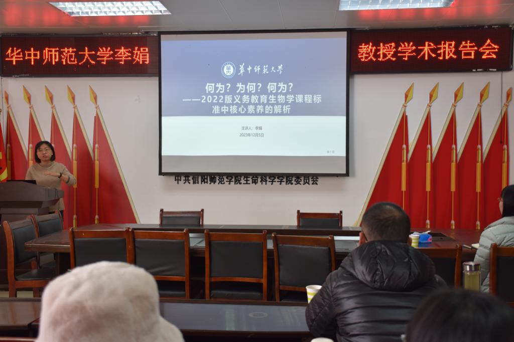 12月5日下午,应云顶yd2223线路检测邀请,华中师范老员工命科学学院李娟副教授在生物楼412会议室做了题为“2022版义务教育生物学课程标准中核心素养的解析”的学术报告。报告会由公司彭波博士主持,学院副经理宋新强,部分教师及学科教学(生物)专业研究生聆听了报告。