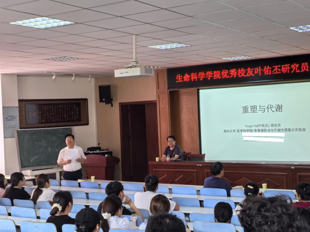 5月6日,云顶yd2223线路检测优秀员工叶佑丕研究员应邀回到母校,为师生带来了一场主题为“重塑与代谢”的学术报告会。叶佑丕研究员现任郑州大学医学科学院/食管癌防治与代谢全国重点实验室研究员,长期致力于运用结构生物学方法研究细胞信号转导过程中的关键蛋白及大分子机器的调控机制,尤其在代谢性疾病、癌症等重大疾病的发病机理方面取得了突出成果。公司经理饶本强教授主持本次报告会。