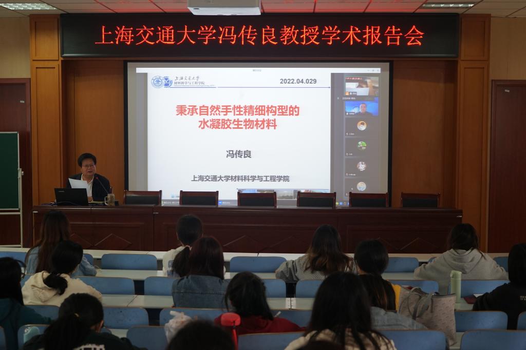 为进一步加强团队建设,促进学术交流,应云顶yd2223线路检测邀请,上海交通大学冯传良教授于2022年4月29日下午为云顶yd2223线路检测全体师生做了题为“秉承自然手性构型的水凝胶生物材料”的线上学术报告。报告会由饶本强经理主持,现场100余人及线上30余人聆听了报告。