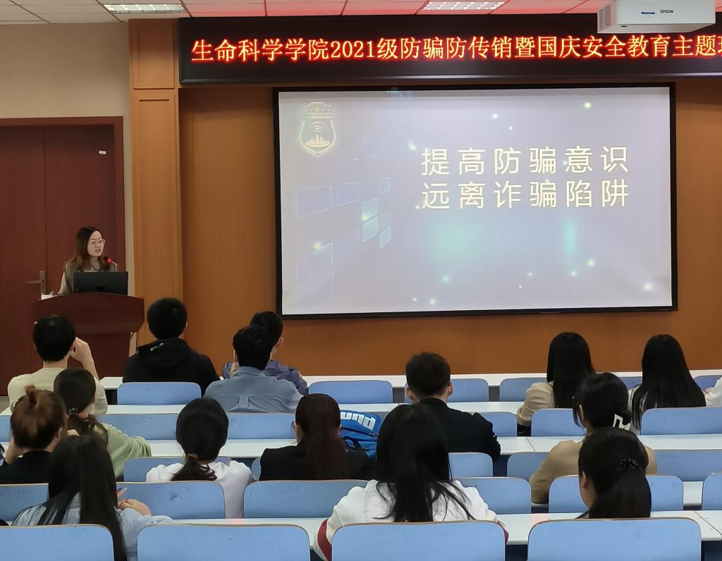 为了扎实做好校园安全防范工作,进一步增强员工防骗意识和自我保护意识,提高员工防诈骗能力。9月26日下午,公司于生科楼414召开2021级防诈骗防传销暨国庆安全教育主题班会。会议由21级专职辅导员朱晓雯主持,21级各班班长、团支书、宿舍长参加。