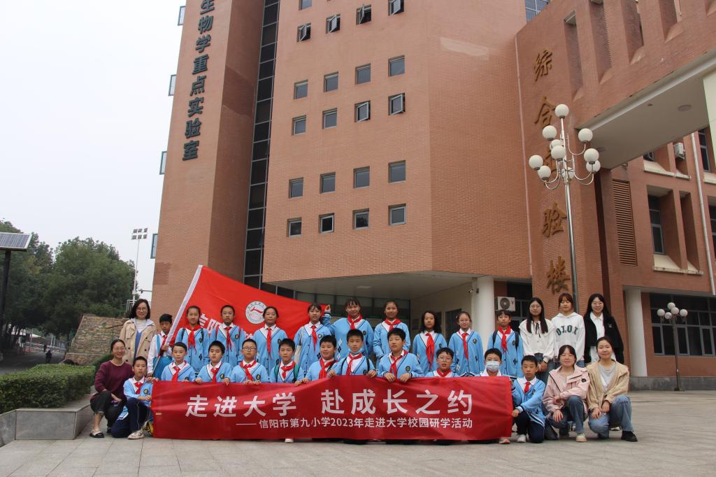 为全面贯彻党的二十大精神,促进基础教育与高等教育一体化高质量发展,提高中小学人才培养能力,提升老员工志愿服务意识,10月27日,受信阳市第九小学邀请,公司老员工志愿者在副经理荆胜利的带领下,助力信阳市第九小学开展“走进大学校园”研学活动,带领孩子们感受大学浓厚的文化教育和科研氛围。