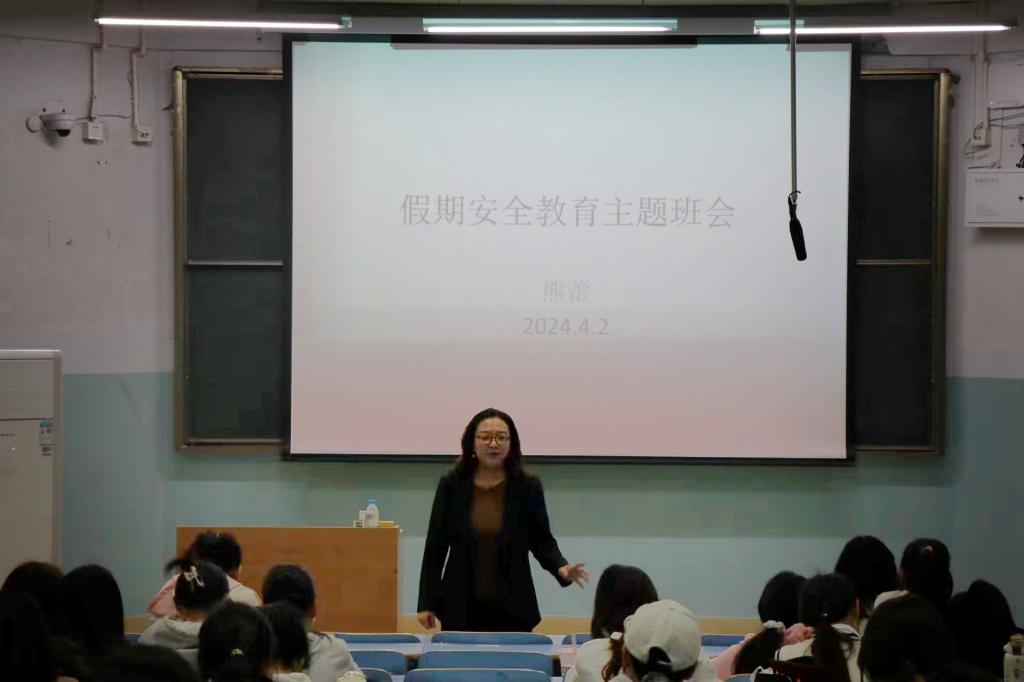 会议伊始,熊蕾从人身安全、交通安全、财产安全等几个方面强调清明假期出行安全的重要性。同时提醒同学们随着夏季到来,气温上升,一定不要前往没有安全保护措施的河边游泳。会议中多次重点强调同学们清明假期间的出行安全并用相关事例向同学们讲述。会议最后,熊蕾交代放假的有关事宜并要求同学们认真填写假期去向表,确保各班同学放假期间的人身安全。