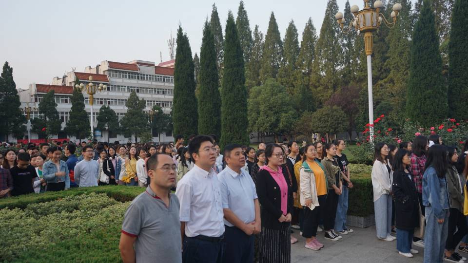 十•一的5:40,公司五个专业四个年级300余名师生代表,齐聚学校明德广场升旗区,迎着早晨的第一缕曙光,向冉冉升起的国旗行注目礼,雄壮的国歌声响彻广场,祝愿我们的祖国生日快乐、欣欣向荣。
