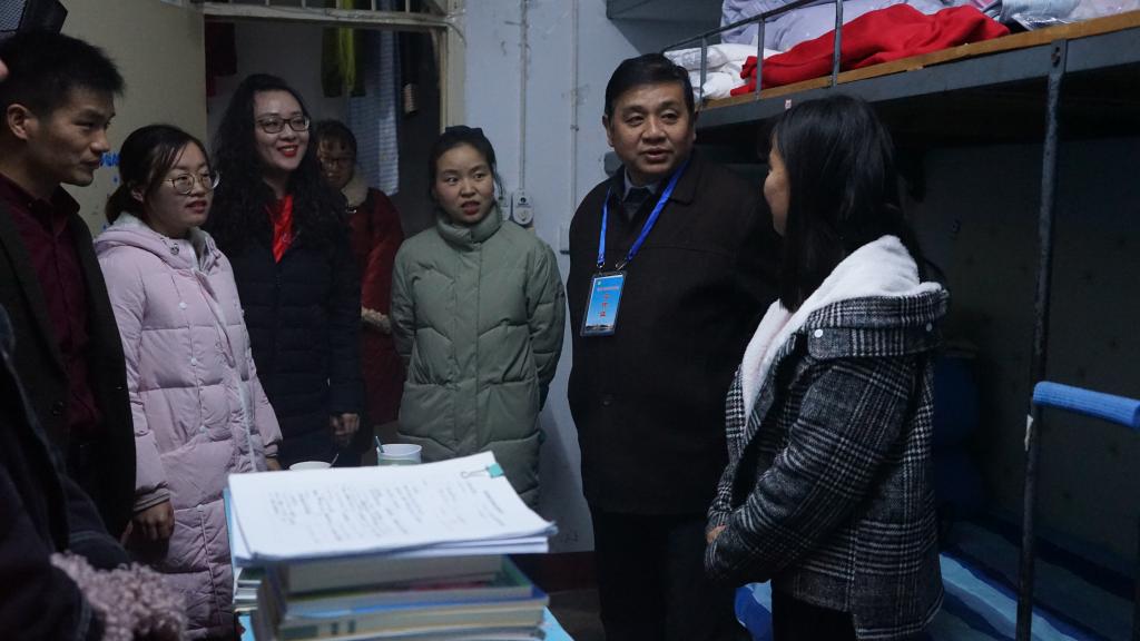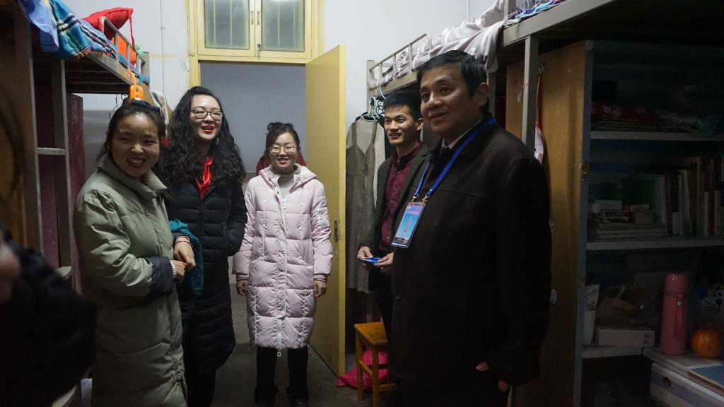 小雪节气以来,天气渐寒,按照学校《关于进一步加强冬季老员工安全教育管理的通知》的要求,11月28日晚9点,公司党委副书记杨霁虹和辅导员老师熊蕾、孙太红、杨娟娟、朱晓雯以及员工会主要干部,对公司4个年级老员工宿舍进行排查。