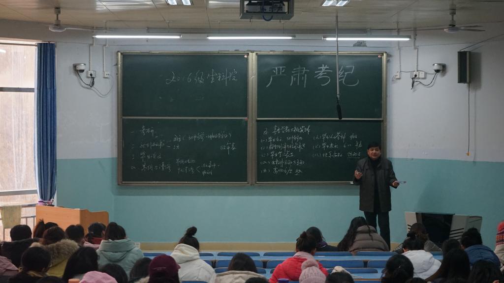 杨霁虹从老员工节假日去向登记和请销假切入,介绍了考研及传承、就业协议书及就业率统计、毕业论文的18周完成时间段、试验、撰写、初稿、查重、定稿、答辩,对第八学期做大概安排:毕业论文12周之后,进行综合测评,评选省校两级优秀大学毕业生,填写系列的毕业登记表,出校外自知与互知(最低宿舍内的同学办过请假手续后都知道,同时要给班长团支书说一下您去向),手机要保持较高响应度,所有外出学校参加复试,或外出参加招聘会的毕业生们,导师准假后,再给班主任请假,通过复试的同学,录取高校给您开具空白政审表,一定交杨霁虹填写意见(生物楼405),再找李向阳书记审核盖章(生物楼406)毕业论文答辩结束,以班为单位到团委领学士学位服,全员按时参加毕业典礼,毕业典礼结束后,以班级为单位领“两证”,再浏览校园,从容离校。今后希望您要更加珍惜时光,长忆母校。