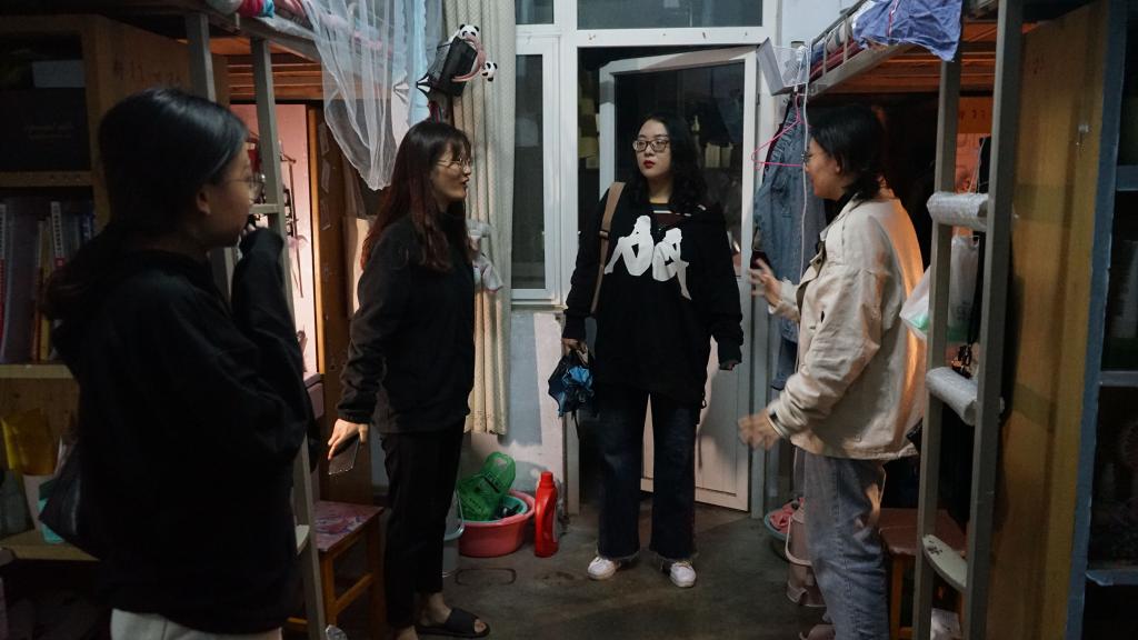 熊蕾重点对每个宿舍的用电安全隐患依次进行了排查,告诫员工一定要严格遵守校规校纪,不能为了一时的方便忽略用电安全问题;嘱咐员工秋季降温要注意保暖。熊蕾还详细地向员工列举用电安全的注意事项,要求员工人走电断,严格遵守用电安全守则,明令禁止员工在宿舍使用电饭锅等大功率电器。熊蕾还了解到同学们临近考试的学习情况,为缓解学子们考前紧张的情绪,她提醒同学们要注意作息规律,做到劳逸结合。