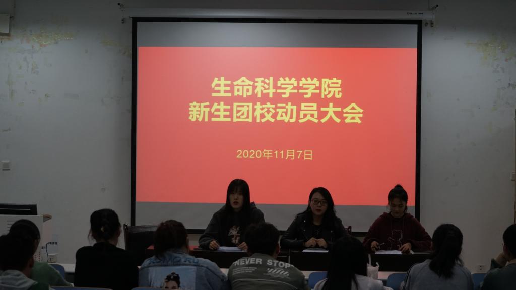 11月7日,公司于生物楼414多媒体教室召开新生团校动员大会。20级各班班长和团支书参加此次会议,大会由院团委书记熊蕾,团委副书记康菡,第二团委副书记贺雅雯主持。