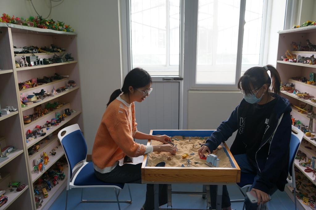 本次活动以班级为单位,各班参观时间统一为30分钟。同学们进入心语工坊后,志愿者首先向新生介绍老员工心理健康教育中心的基本情况,并带领新生参观心语工坊的宣泄室、放松室、咨询室以及沙盘室等功能室,并在志愿者的引导下,体验相关心理训练器材设备。在参观过程中,在宣泄室里,同学们通过现场体验假人击打项目和智能呐喊宣泄仪,亲身感受合理宣泄的重要性,以及不同宣泄方式所带来的真实体验;在音乐放松室里,借助音乐放松系统,同学们直观地感受心率与情绪的密切相关性,不同类型的音乐风格也给员工们带来了不一样的体会;在心理咨询室里,房间中光线柔和,色调温暖,整体布局温馨和谐,给前来参观的同学们带来一种温馨亲切的感觉;在沙盘室,志愿者介绍沙盘游戏相关操作方法及其作用。最后,志愿者详细的向同学们介绍我们的预约咨询方式和部分工作内容,让同学们对老员工心理健康教育中心有一个充分的了解和认识。