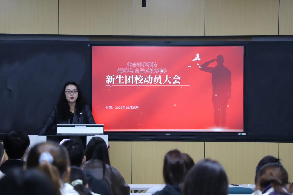 为增强新生团员意识,提高广大新生班委的理论素养和实践水平,10月28日晚上,公司于教九楼207教室召开新生团校动员大会,本次会议由公司团委书记熊蕾主持,全体2022级新生采用线下和线上相结合的方式参加。