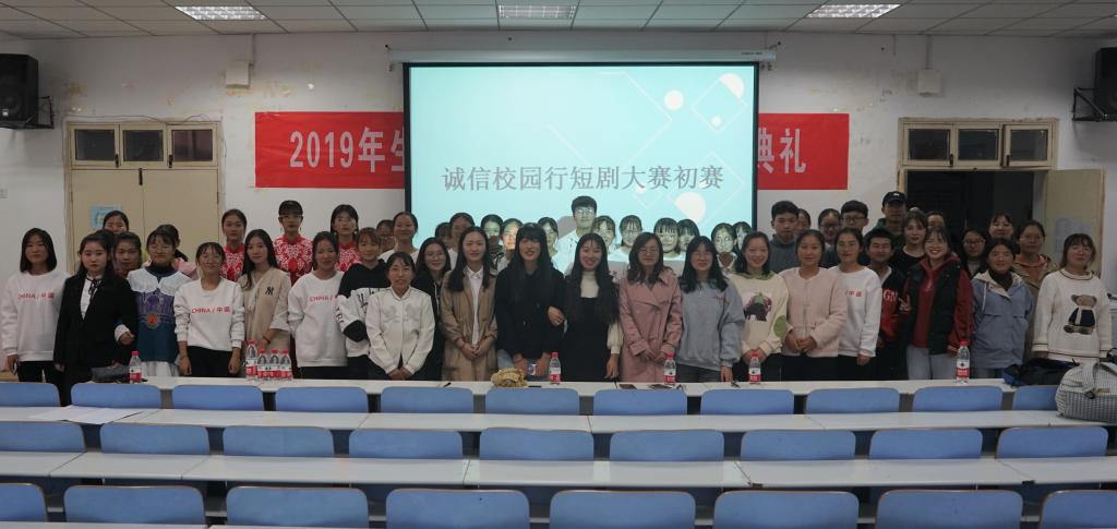 11月10日,由公司员工会助贷部主办的诚信校园行短剧大赛初赛于生物楼414多媒体教室举行。专职辅导员朱晓雯出席此次比赛,同2019级百余名学子共同观看此次比赛。朱晓雯及部分员工干部担任此次比赛评委。