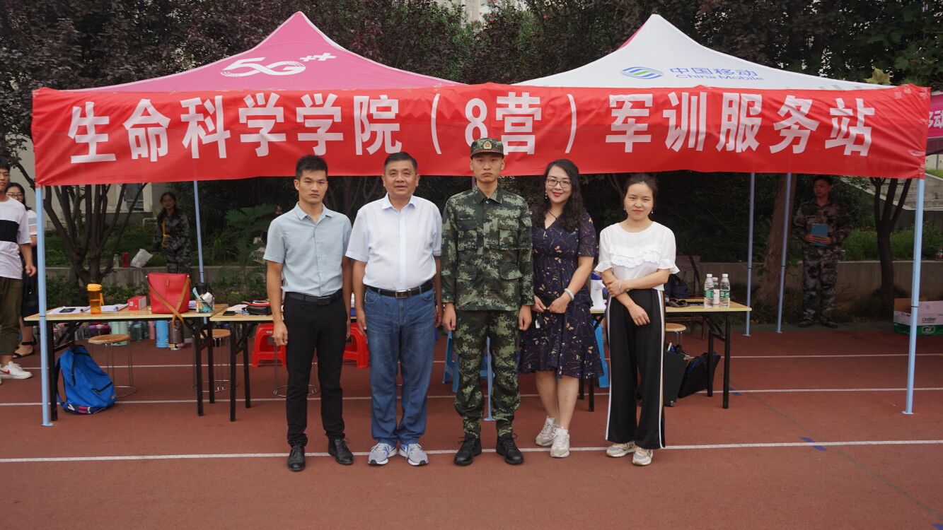 9月14日,公司2017级优秀学子徐朝阳即将奔赴军营的前夕,在新生军训现场为2019级31名男生做入伍报国的现身演说,公司党委副书记杨霁虹,武装干事熊蕾,2017级专职辅导员孙太红、朱晓雯,2019级专职辅导员杨娟娟等领导老师参加,在学校东操场军训现场与徐朝阳热烈交谈。