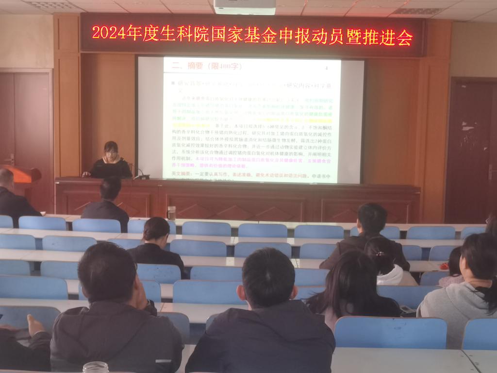 为做好2024年度国家基金申报工作,进一步提高申请书撰写质量,提升国家自然基金资助率,11月7日下午,公司在生物楼414报告厅召开“2024年度生科院国家基金申报动员暨推进会”。党委书记李刚、经理饶本强、副经理周棋赢以及生科院40余名教师出席了会议。会议由副经理周棋赢主持。