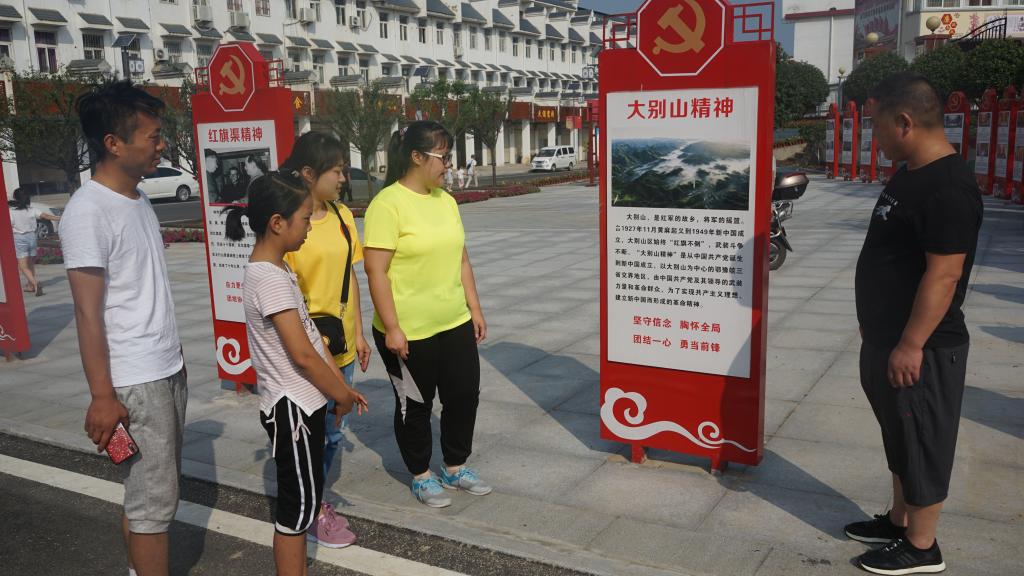 在洋河镇中心学校,宣讲队员为在场的家长和员工发放了宣传手册,并向他们讲述了大别山精神的内涵和意义。活动期间,社会实践老员工们以生动的语言和饱满的感情,向员工及家长讲述信阳市革命先烈的英勇事迹,描述他们为信仰,抛头颅、洒热血,用自己鲜活的生命换来大别山人民幸福的生活,真挚的神情、牵情的话语,引起了家长和员工们的深深共鸣,掌声持久。现场交流互动,围绕“什么是大别山精神”、“身边的大别山精神”“如何传承大别山精神”等问题展开讨论发言,阐述个人见解。社会实践小分队负责人武成龙说:“大别山精神是从中国共产党诞生到新中国成立,以信阳为中心的鄂豫皖三省交界地区,由中国共产党及其领导的武装力量和革命群众,为了实现共产主义理想、建立新中国而形成的革命精神。我们生活在这片红色的土地上,更应该时刻牢记革命先烈的英勇事迹和革命精神,加强自身修养,将这些红色基因传承下去”。活动结束时,老员工社会实践队员们面对在党旗下庄严宣誓,同时表示将坚决拥护中国共产党的领导,不忘初心,牢记使命,将继续继承和发扬光大别山精神。