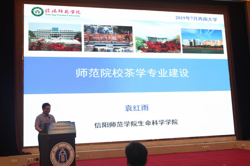 在经验交流报告阶段,袁红雨经理以“师范院校茶学专业建设”为题,向与会专家介绍了信阳师范学院茶学专业建设、茶学学科发展和河南省茶树生物学重点实验室建设情况,得到了茶学学科组专家一致好评。