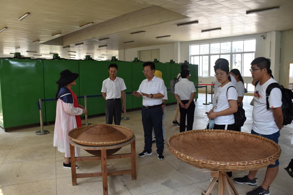 服务团师生来到文新万亩生态茶园生产基地进行实地考察。在绿茶生产车间,负责人向大家详细介绍了绿茶的制作流程及仪器设备性能,研究生们亲自动手体验了信阳毛尖生锅杀青、熟锅揉捻、理条以及炭火烘干提香的整个工艺流程,体会到了小茶叶中的大学问,也体会到了茶农在茶叶制作过程中付出的辛苦劳动。茶学专业教师就茶叶制作过程中的细节与负责人进行了深入探讨,并给出专业性的指导意见。