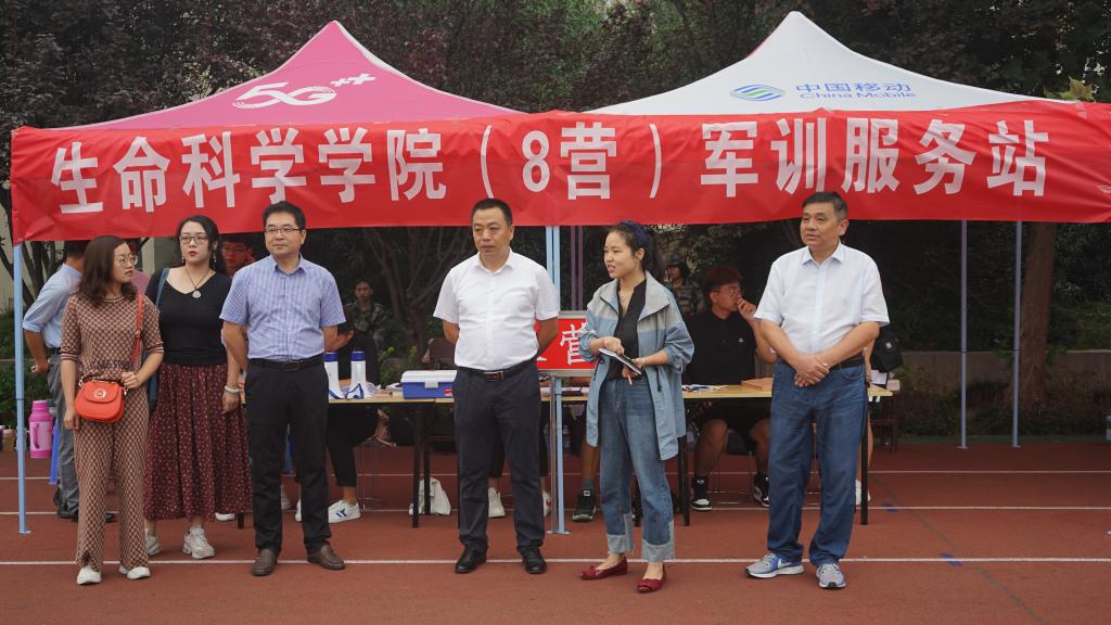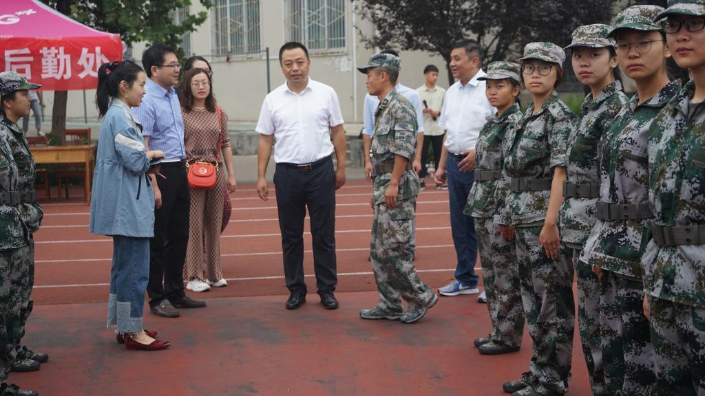 军训期间,正逢中秋佳节,公司党委书记李向阳,经理袁红雨等领导老师来到学校东操场看望在节日依旧军训的公司2019级新生。