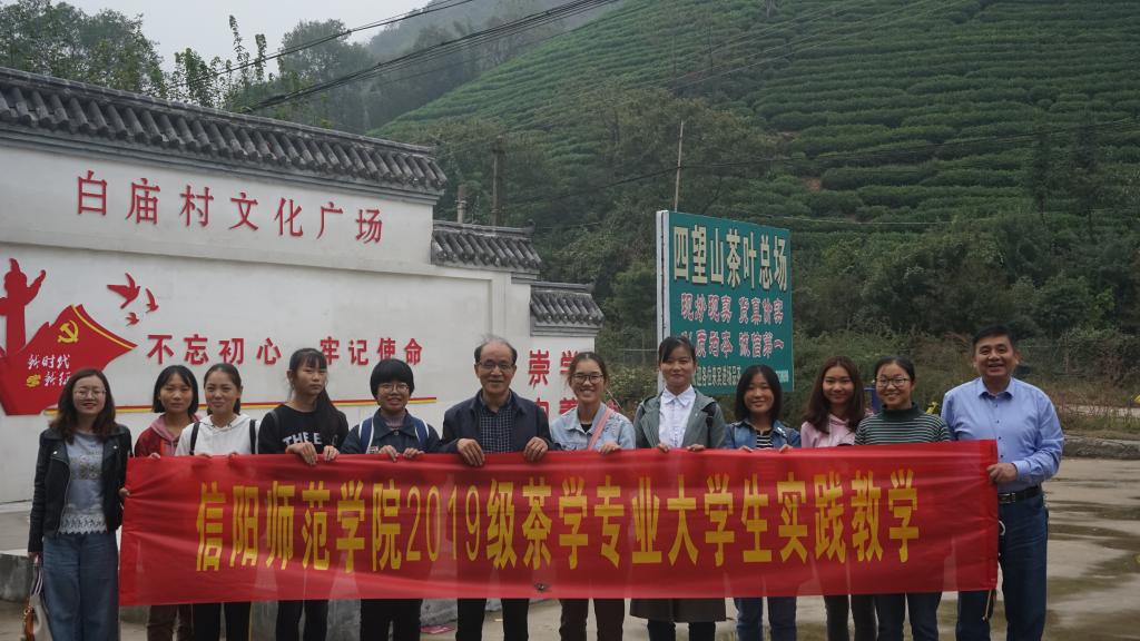 10月13日,2019级茶学本科班9名老员工,在班长姜慧敏、团支书张品芝和学习委员张雯雯的组织下,邀请公司茶树生物学省级重点实验室主任江昌俊教授担任茶园实践教学教师,去往信阳市浉河区浉河港镇、董家河镇的四望山茶场、黄龙寺茶场、瞭望台茶场、广义茶场开展课外实践教学,辅导员杨霁虹、朱晓雯参加。
