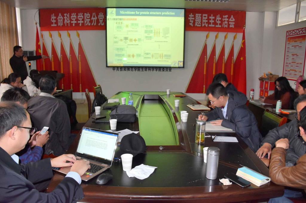 12月16日,公司在生物楼412会议室举行生物医学及生物信息学专题报告会,新加坡国立大学宋永健教授、华中农业大学陈天圣教授、华中科技大学宁康教授应邀分别作了题为“Finding structural variations in repeat regions using high-throughput sequencing data”“外泌体在诊断和治疗的研究”“微生物组大数据—组学数据整合与挖掘的新前沿”的学术报告。公司青年博士及部分研究生和本科生聆听了报告,报告由副经理宋新强主持。