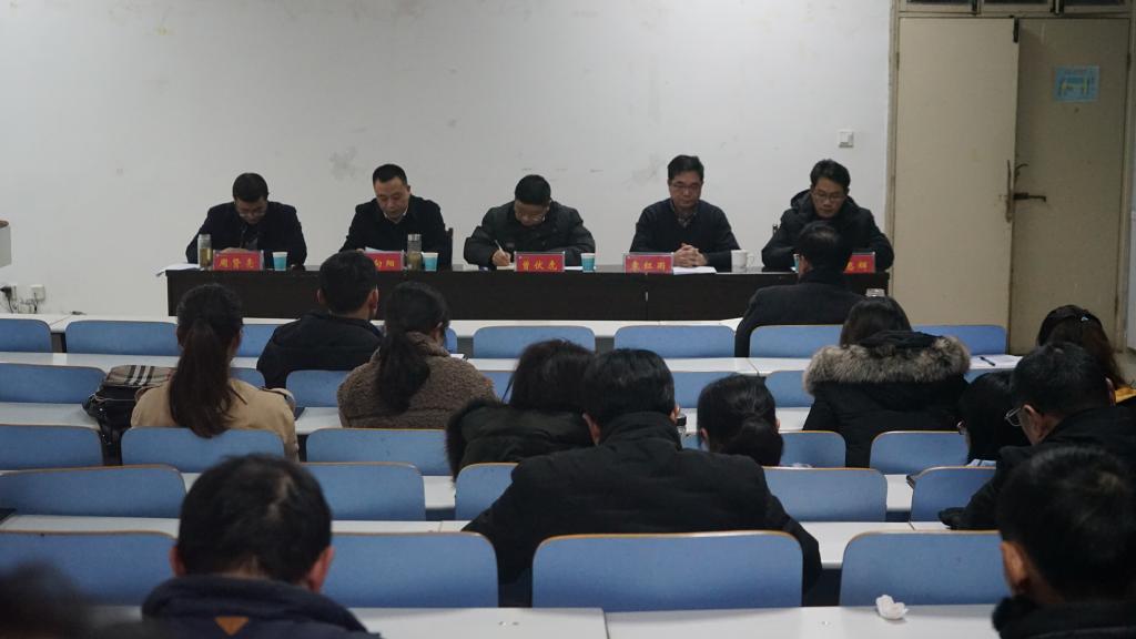 公司处级领导班子和处级领导2019年度考核大会在生科楼414教室召开,公司党委委员、党委统战部部长曾伏虎、校纪委办公室副主任胡思辉、公司党委组织部干部科科长周贤亮一行3人对公司考核测评进行指导,学院领导班子和全体教职工参加了会议。会议由公司党委书记李向阳主持。
