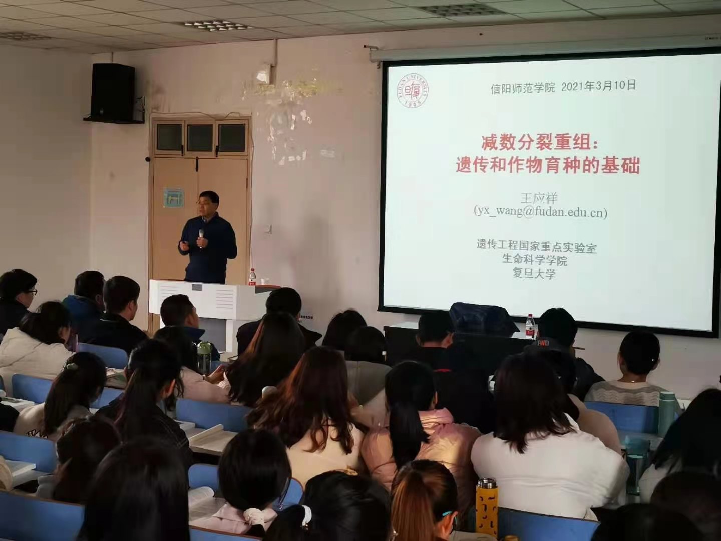 报告会上,王应祥教授重点讲解了减数分裂的过程和特点,介绍了减数分裂和有丝分裂的主要区别,并通过减数分裂与生殖健康、农作物遗传育种、作物育性以及基因定位等方面的关系阐述了减数分裂的重要性以及它的生物学意义和发展前景。同时,他还展示了其研究项目在减数分裂的研究和进展,并与青年教师们就减数分裂重组研究进行了互动交流和探讨。