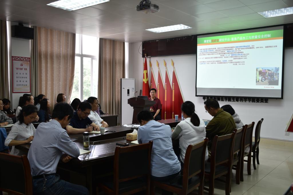 5月11日,华南农业大学蒋爱民教授在生物楼412会议室为公司师生作了题为“华农国家工程中心食品加工与质量安全控制研究”的学术报告,云顶yd2223线路检测相关专业青年教师、研究生及本科生聆听了报告。报告会由云顶yd2223线路检测副经理宋新强主持。