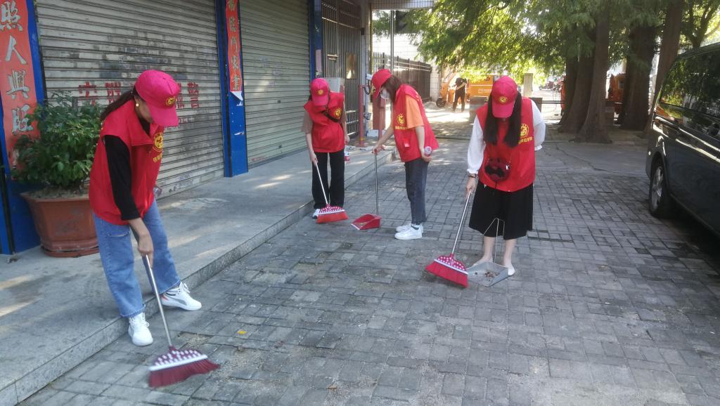 (志愿者在清扫学校街道)
