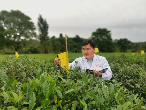 今年雨水较多,高温高湿天气造成茶尺蠖虫害在部分茶园爆发。接到茶农茶农求助电话后,张伟到茶园开展茶尺蠖虫害调查研究。他给茶农介绍,茶尺蠖是鳞翅目害虫,幼虫主要取食嫩叶。此虫发生代数多、繁殖快、蔓延迅速,危害性大。根据研究结果,他给出具体防控建议:农业防控:深翻或施肥,清除树冠下落叶及表土中的虫蛹,围绕根茎培土10cm并压紧;适当修剪,降低虫口基数和危害。物理防控:成虫羽化期,设置茶尺蠖性诱捕器诱杀雄成虫。生物防控:喷洒茶核·苏云金杆菌。他带领研究团队,研究光和颜色对害虫的影响,打造杀虫灯和杀虫板,准时准点准确杀虫,采用绿色防控方式,从根本上提升了茶叶质量安全。