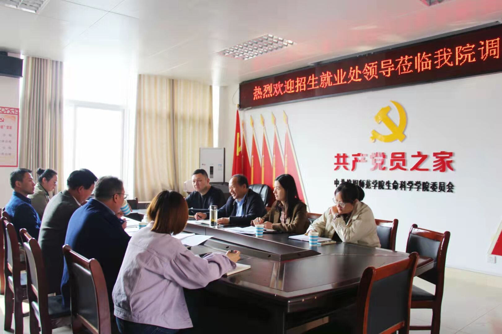 会议伊始,经理饶本强代表学院对招就处领导的到来表示热烈欢迎,强调学院高度重视招生和就业创业工作,从学院近三年新生报到情况、学院拟新增专业设置和毕业生培养质量三个方面对生科院的招生和专业设置情况作了介绍,并从生科院毕业生考研情况入手,分析了毕业生缓就业慢就业的原因。宋新强对生科院和医学院的本科生培养成效作了介绍,并着重介绍了医学院的未来发展形势。荣宪举汇报了生科院从就业指导、就业支持和就业帮扶三个方面展开动作提高毕业生的毕业去向落实率。
