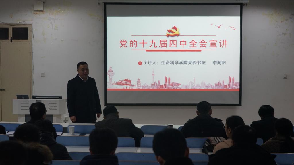 李向阳在会议中传达了党的十九届四中全会精神。他围绕党的十九届四中全会审议通过的《中共中央关于坚持和完善中国特色社会主义制度、推进国家治理体系和治理能力现代化若干重大问题的决定》对党的十九届四中全会精神进行解读,重点讲解了我国的十三个“显著优势”及十三个“坚持和完善”,强调我国发展的三个总体目标。他提出以下几点:一要贯彻落实党的十九届四中全会精神与习近平总书记系列重要讲话相结合,坚持走中国特色社会主义道路,推进国家治理体系和治理能力现代化;二要切实强化制度意识,带头维护制度权威,做制度执行的表率,带动全党全社会自觉尊崇制度、严格执行制度、坚决维护制度;三要落实意识形态工作制,强化意识形态领域舆情监管,引导全党全社会充分认识中国特色社会主义制度的本质特征和优越性,坚定制度自信;四要推动广大干部严格按照制度履行职责、行使权力、开展工作,提高推进“五位一体”总体布局和“四个全面”战略布局等各项工作能力和水平。