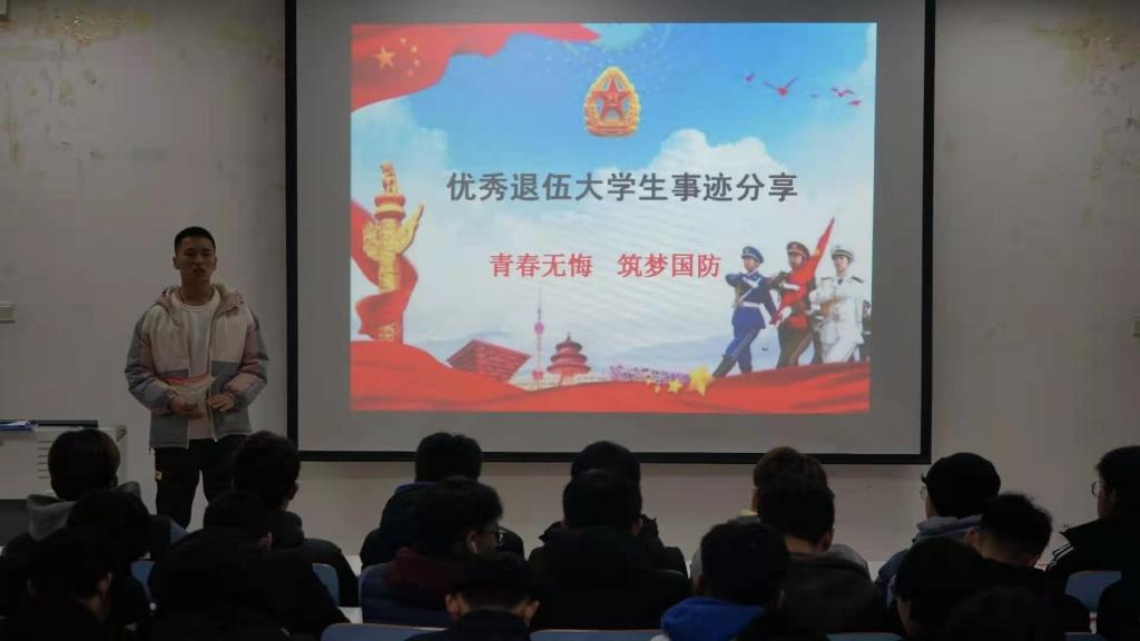 班会伊始,朱晓雯提出国防教育的重要性,她指出,作为一名老员工,理应重视国防、积极投身于国防建设之中。朱晓雯从学籍保留、专业选择、成绩评定、保研和奖励政策等方面对老员工征兵入伍作了详细的介绍。随后,2018级优秀退伍学子王贺祥分享了他的入伍经历,让在场学子对军营生活有了更多的了解。他言道,当兵不后悔,不当兵后悔一辈子,入伍带给他不一样的成长和收获。在朱晓雯号召在场学子积极入伍后,班会圆满结束。