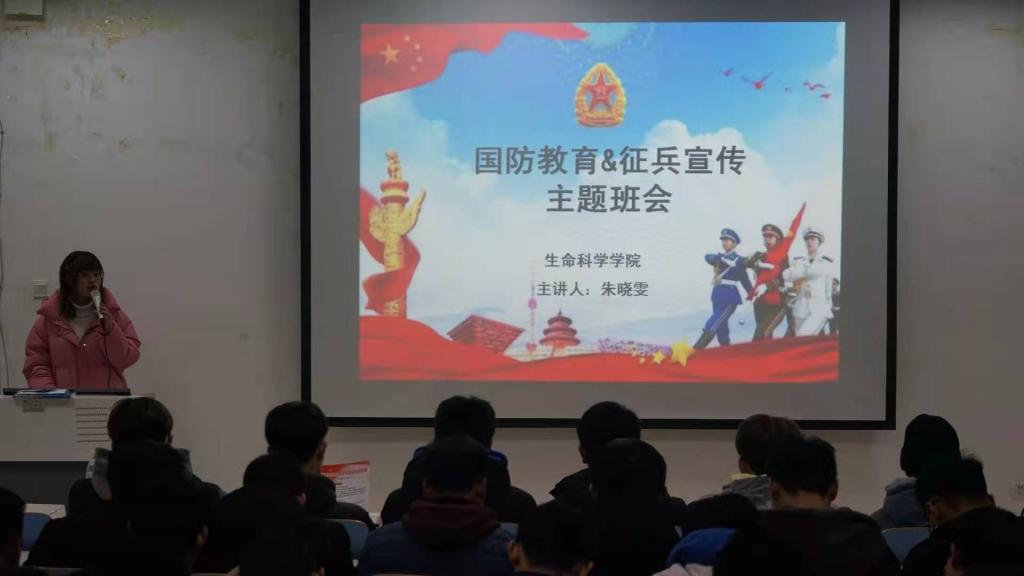 为增强员工的国防意识,培养员工的爱国情怀,1月4日晚6点,公司于生物楼414多媒体教室开展国防教育暨征兵宣传主题班会。班会由学院武装干事朱晓雯主持,公司全体男生参加了此次班会。