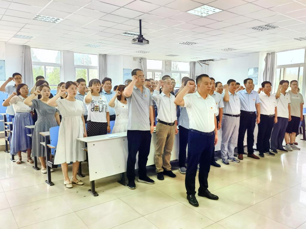 6月15日,公司在生科楼414多媒体教室举行了教工党员重温入党誓词仪式,学院全体教工党员参加仪式。仪式由公司党委书记李向阳主持。