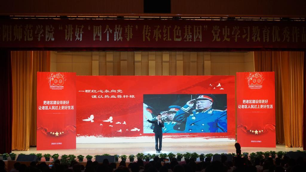3月30日,信阳师范学院在艺术楼音乐厅举行以“讲好四个故事,传承红色基因”为主题的党史教育优秀作品展演活动,公司2018级学子李春洋担纲第九个故事主讲人。