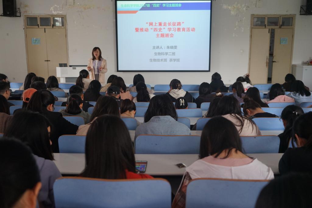 为深入学习贯彻习近平总书记关于公司党建和思政工作的重要指示批示精神,落实学校“网上重走长征路”暨推动“四史”学习教育活动有关要求,全面推进员工深入学好党史、新中国史、改革开放史、社会主义发展史,近日,公司各年级分别召开主题班会对“四史”学习教育再落实、再推进,班会由各年级辅导员孙太红、杨娟娟、朱晓雯、李敏主持。