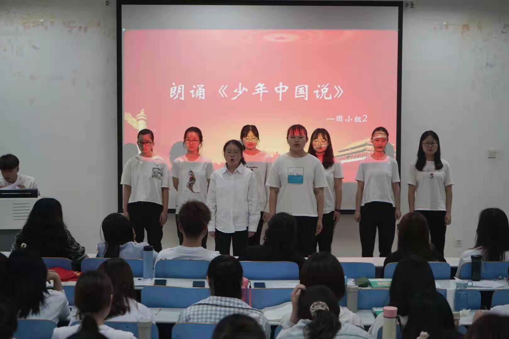 议分为序言、五四微电影和才艺展示三个部分带领参会人员学习五四精神。首先,此次团课活动的主题由五四运动的科学内涵“爱国、民主、科学、进步”引出。接着,以五四微电影的形式生动地展现了五四精神,深化了团员们对五四精神的认识。在才艺展示部分,2019级生物科学一班团支部的团员们用歌曲、朗诵、话剧等丰富多彩的表现形式来具体的阐述他们对于五四精神的认识和理解。最后,熊蕾针对此次会议发表总结感言,她强调党旗所指就是团旗所向,五四精神值得我们传承,在深入学习四史的同时,要树立远大的理想,勇担时代使命。