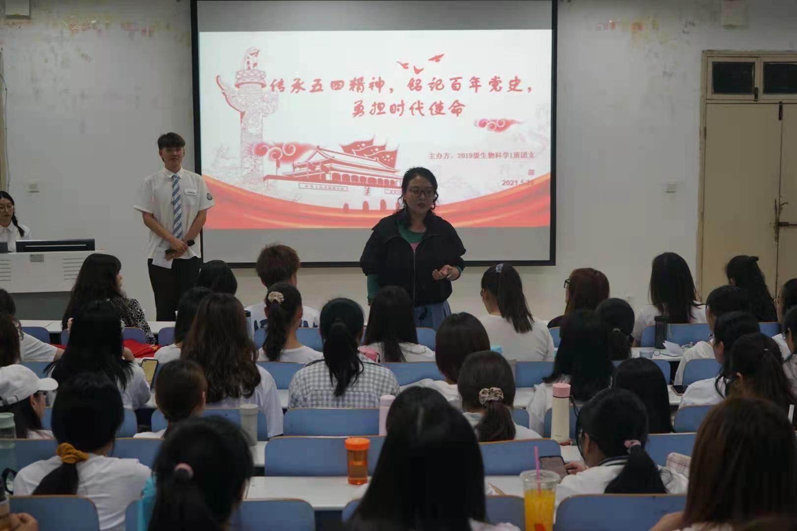 根据公司共青团组织建设发展的需要,进一步推动团学建设,5月26日,公司于生物楼414多媒体教室召开“传承五四精神,铭记百年党史,勇担时代使命”主题团课活动,院团委书记熊蕾、团委副书记康菡、化学与化工学院团委副书记邓雪婉、朱宛霞、物理与电子工程学院团委副书记李诗吟、建筑与土木工程学院团委副书记郭师慧、院员工会主席乔群龙、员工会副主席路孟戈和2019级生物科学一班团支部成员出席此次会议。