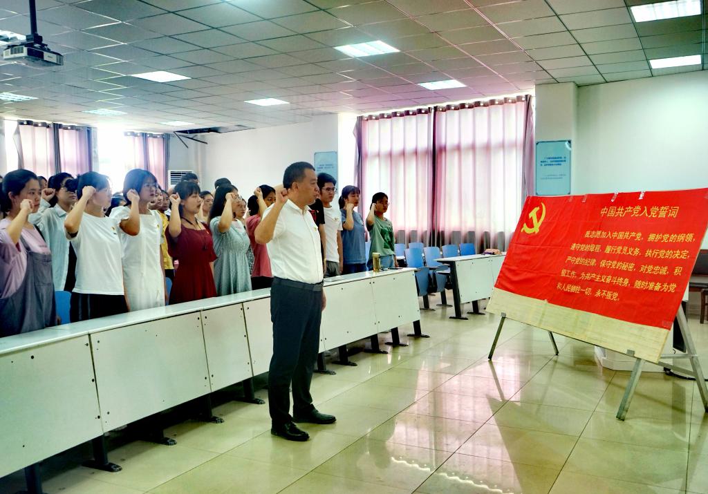 在中国共产党成立100周年之际,6月9日,公司党委在414教室组织全体员工党员举行了重温入党誓词仪式,员工党支部书记杨娟娟主持仪式。
