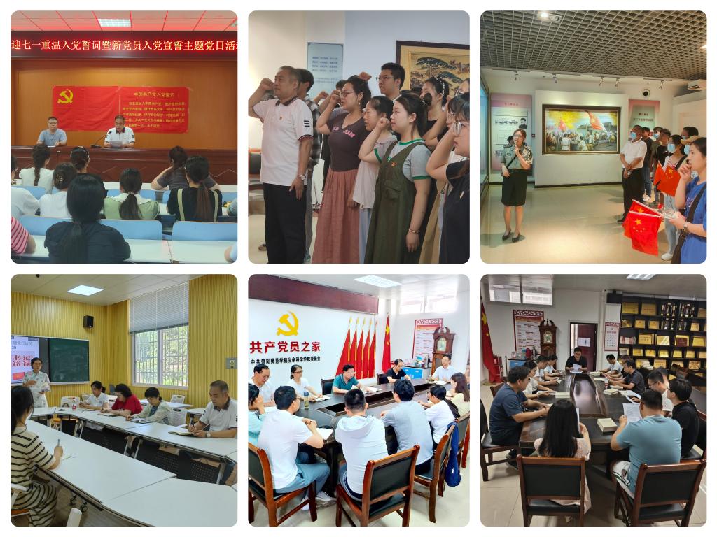 红歌传唱扬精神、参观旧址强使命为进一步丰富主题党日活动,教工和员工党支部自发开展支部连支部活动,推选擅长唱歌同志用“红歌传唱”的形式带领党员同志共同回顾党的百年峥嵘岁月,重温革命前辈不畏艰难、攻坚克难的“战斗史诗”,品读革命精神里的“甘苦味”,在重温党的光辉历史和优良传统中补足精神之钙。同时,依托信阳红色教育资源优势,带领党员同志前往信阳鄂豫皖革命纪念馆开展“礼赞七一 同心向党”主题党日活动,讲解员以“探寻-回顾-感悟-誓言”为主线,为同志们深挖梳理馆中所蕴含的红色文化内涵,教育引导广老员工党员牢记初心使命,践行责任担当,把党的光荣传统和优良作风学习好、发扬好。